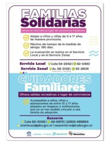Desde el Servicio Local de Protección a los Derechos del Niño, niña y Adolescente, informaron que se encuentra abierta la inscripción para el registro de familias cuidadoras que puedan ofrecer un lugar de convivencia transitoria.