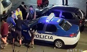 La imagen fue compartida por la cuenta de Instagram, Only in Córdoba, y en la misma se observa un procedimiento policial, en el cual cinco individuos tienen sus manos apoyadas contra el móvil de la fuerza.