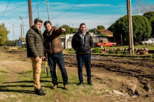 El secretario de Planeamiento y Obras Públicas, Adrián Furno y el director de Hábitat, Vivienda y Obras Comunitarias, Lisandro Dones, siguieron el avance de los trabajos que, una vez culminados, significarán un antes y un después en la vida de los vecinos que allí habitan.