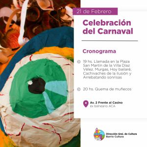 Las actividades comenzarán a las 19 de este viernes 21, en la Plaza San Martín. Luego habrá una caravana por calles principales de la Villa Díaz Vélez, que culminará en el ex Balneario ACA con la quema de los muñecos.