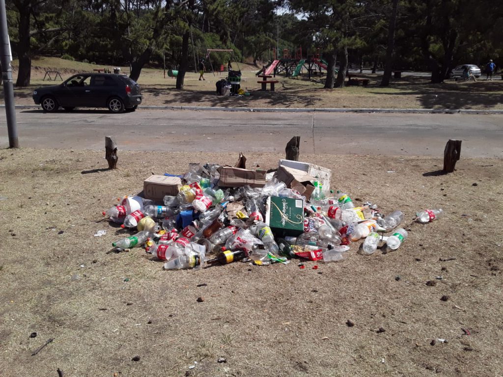 Vecinos desaprensivos dejaron botellas, latas de bebidas y todo tipo de elementos que generan suciedad.