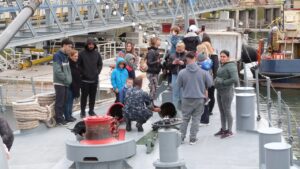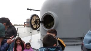 Largas colas de familias y pequeños se formaron para poder abordar el buque de la Arma Argentina y recorrerlo en su interior. Mañana domingo, en el horario de 10 y las 18 en el giro 12, de la margen Necochea.