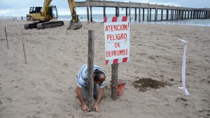 Con respecto a la parte de la estructura introducida dentro del mar que aún permanece estable, explicó Botella que “cuando tengamos marea baja el jueves 2 después de la fecha festiva trataremos de terminar de derribar el muelle.