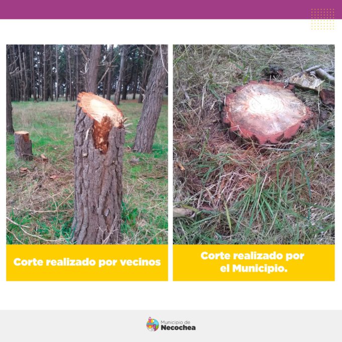 De todas formas, diferenció que “se puede observar que los cortes que hace la Municipalidad son diferentes a los cortes que hacen los vecinos, que suelen entrar al parque a cortar. La Municipalidad corta muy bajo, casi al ras del suelo los tocones, y los deja rectos, cosa que se pudran rápidamente y que se pueda circular por el parque sin tener tocones altos”.