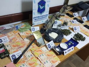 Una vez autorizados los allanamientos por parte del juzgado de Garantías, se procedió al secuestró de cocaína, marihuana, además de sustancia de corte o estiramiento, elementos utilizados para el fraccionamiento de los estupefacientes, dinero y telefonía celular.