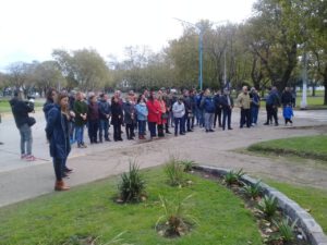 La funcionaria representó al intendente municipal Arturo Rojas en la ceremonia que contó con una buena asistencia de representantes de diversos gremios, incluido el secretario general de la CGT Regional Necochea, Demian Ledesma, quien también se dirigió a los presentes.