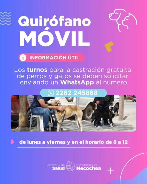En tanto, desde la Dirección de Bromatología e Higiene, encargada de estos operativos, se recuerda a la población que durante todo septiembre el quirófano móvil permanecerá en el sector de Obras Sanitarias, en Av. 59 entre 82 y 84, realizando cirugías de lunes a viernes.