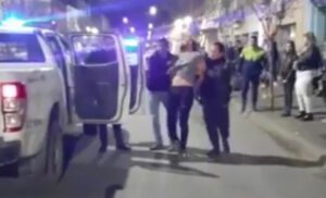 Al mismo tiempo, en la parte frontal del local, el personal del bar, junto con el policial, reducían al segundo masculino, quien intentaba zafarse forcejeando, dando golpes de puño y gritando. Una vez a bordo del móvil policial, es identificado con las iniciales de 29 años de edad.