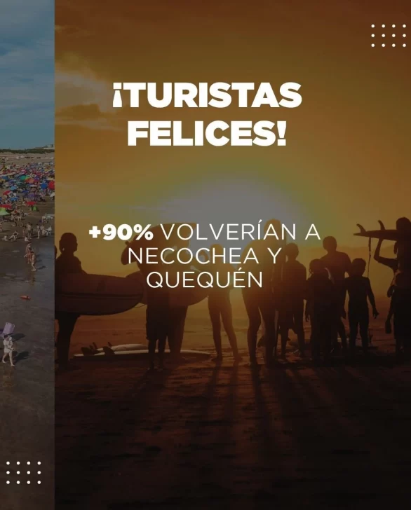 Bajo el título “Números que impulsan”, se realizó una publicación en redes sociales necochea.tur a través de la cual se resaltan las cifras más significativas de la temporada de verano. Entre esas, el 90% de los turistas que eligieron vacacionar en nuestra ciudad, se mostró muy satisfecho con el destino por lo que volvería a visitarnos.
