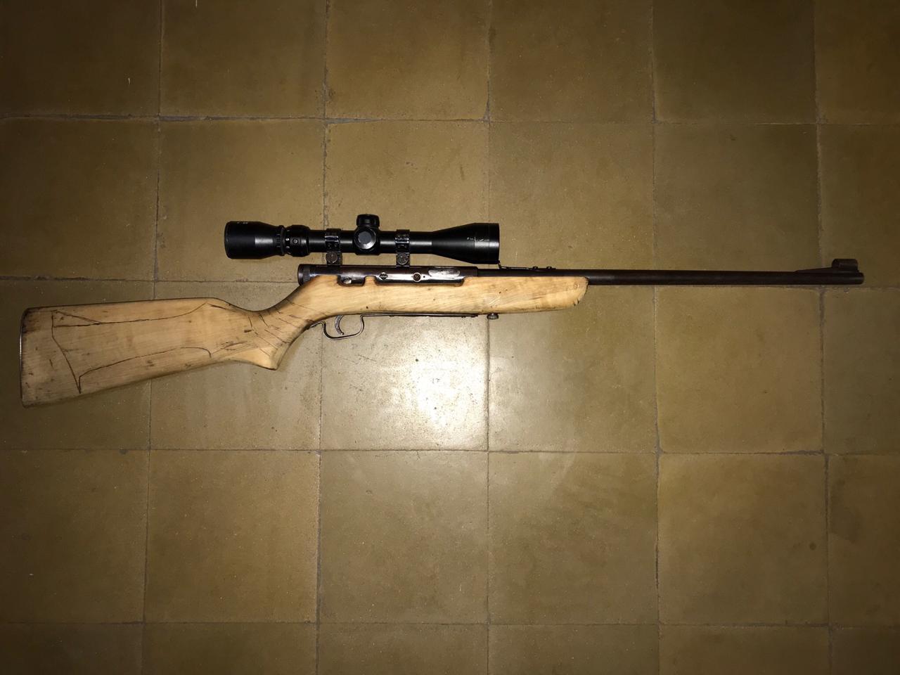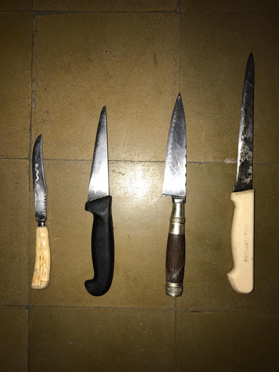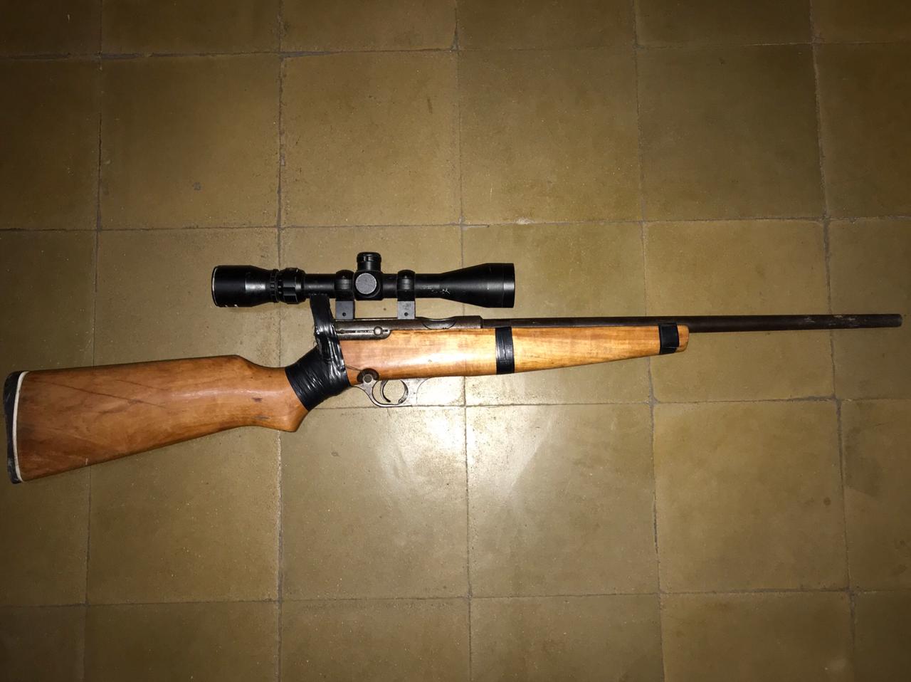 En el asiento trasero se detectó la presencia de dos carabinas calibre 22 con sus respectivas miras telescópicas. Se señaló que en el interior de un morral se halló una caja que contenía 25 proyectiles del mismo calibre, mientras que en una maleta de fabricación casera había cuatro cuchillos para faena y un reflector.