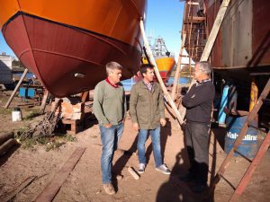 El Presidente del Consorcio de Gestión de Puerto Quequén, Arturo Rojas, recorrió el Astillero Vanoli y se interiorizó sobre los barcos en construcción y reacondicionamiento, junto a los empresarios Hugo Obregozo y Sergio Vanoli.