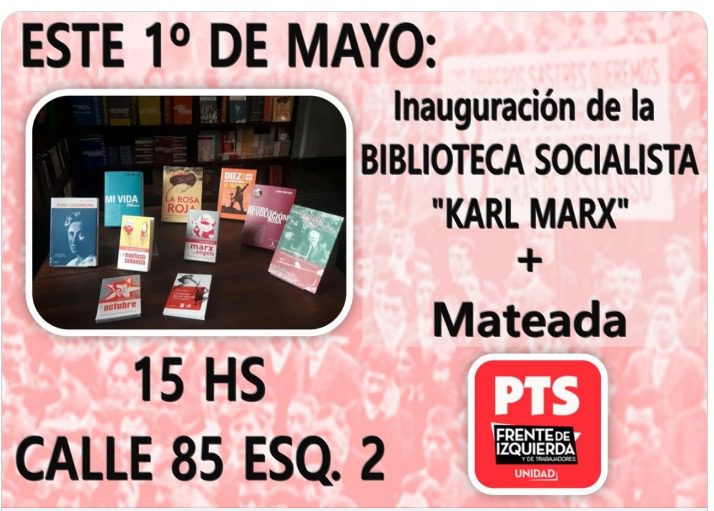 El próximo lunes, 1 de Mayo, el PTS, partido integrante del Frente de Izquierda Unidad, inaugurará la Biblioteca “Karl Marx”.
