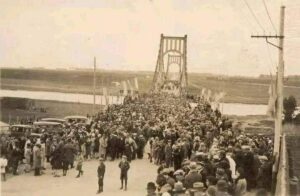 La ciudad amaneció con el espíritu de los grandes días festivos. Más de 6.000 personas se agruparon en inmediaciones del sector donde estaba emplazado el puente. Desde la casa comunal, una crecida comitiva y una multitud impresionante acompañó al comisionado municipal, señor Martínez Sosa. Poco después de las 8.40 arribó a la estación ferroviaria local el tren en el cual llegaban las autoridades nacionales y provinciales que asistían a la inauguración de la obra. El doctor Cantilo fue cálidamente recibido por la población y junto a él llegaron el vicegobernador de la provincia, doctor Victoriano de Ortúzar; el ministro de Obras Públicas y delegado del Poder Ejecutivo provincial, ingeniero Ernesto Boatti; el subsecretario de esa cartera, ingeniero Zuleta; varios diputados nacionales, entre ellos el doctor Leopoldo Bard; y una numerosa comitiva de legisladores y funcionarios.