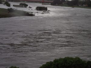 La crecida del río Quequén obedeció a la sudestada y las lluvias que se generaron en la zona, lo que produce que la cuenca se vea recargada en los sectores más bajos.