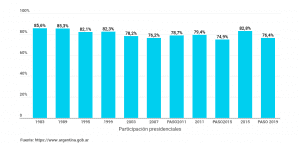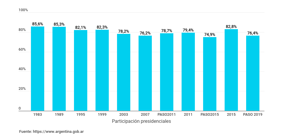 Los argentinos valoramos el derecho elegir y por eso tenemos altos niveles de participación: desde 1983 la participación en elecciones presidenciales fue, en promedio, de 80%.
