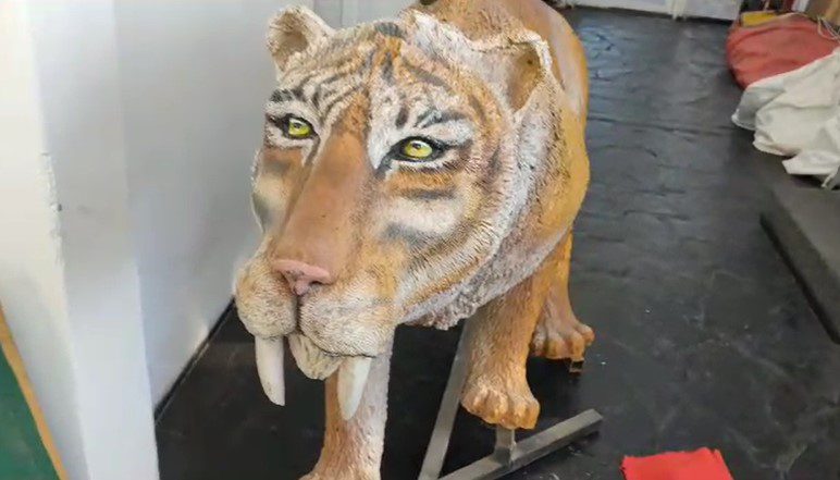 La réplica del Tigre Diente de Sable que fue presentada este fin de semana en la Escuela de Arte, en el marco de los festejos por el día del Niño, será trasladada al parque Miguel Lillo, al lado de las oficinas de Defensa Civil.