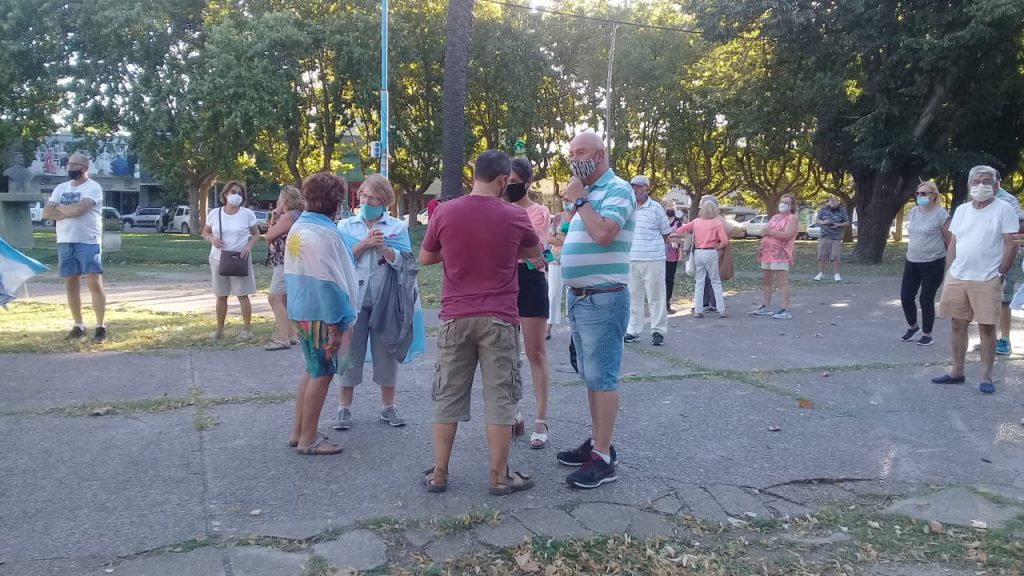 Como en otros puntos del país, un grupo de vecinos autoconvocados se manifestó en la tarde de este sábado en repudio de las llamadas “vacunas VIP” que provocaron el pedido de renuncia del presidente Alberto Fernández al ministro de salud, Ginés González García.