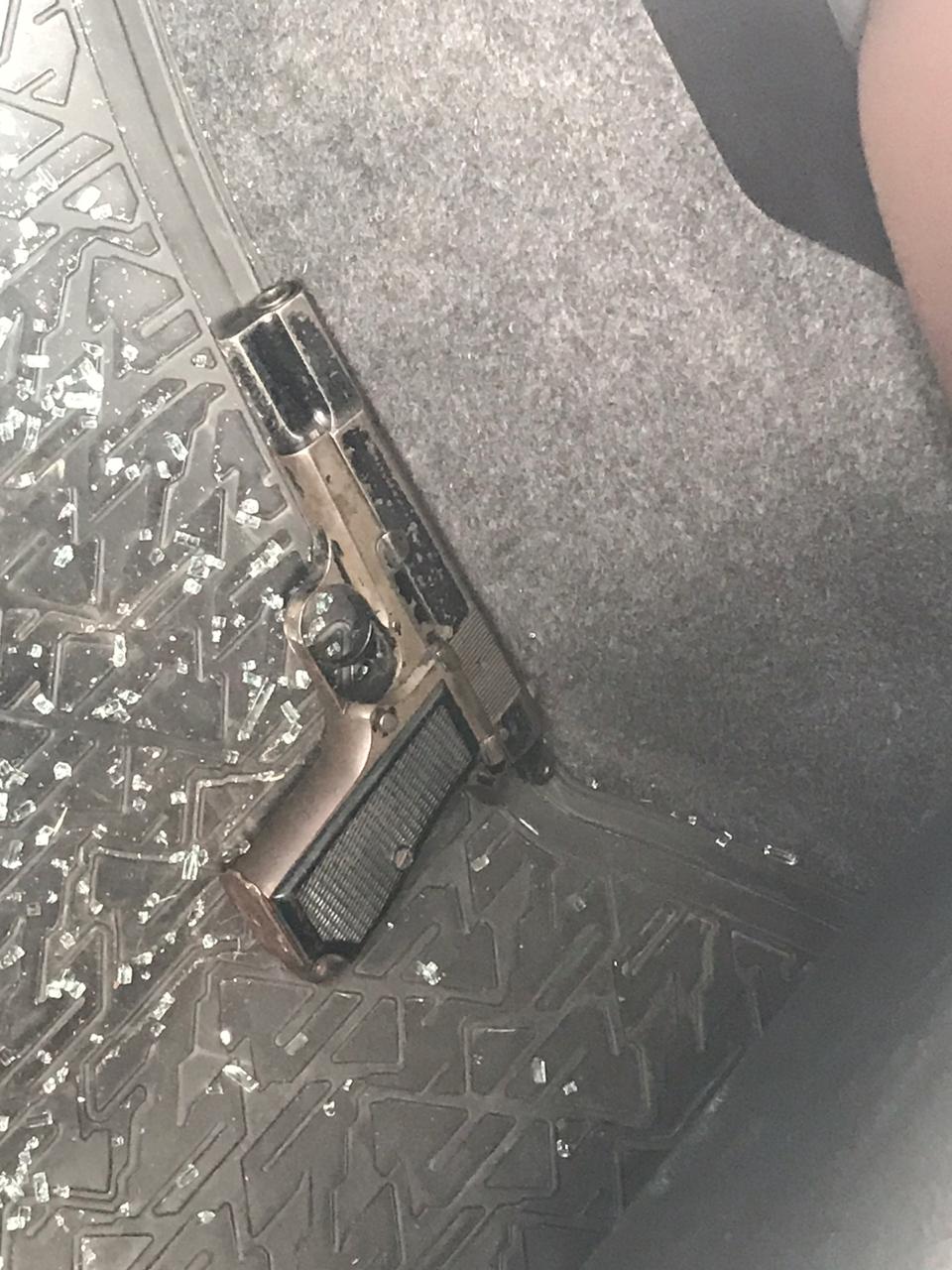 Los atracadores le cruzaron un Peugeot 208 y mediante amenazas y golpes le sustrajeron dicha suma de dinero. En esas circunstancias uno delincuente provocó la rotura de la ventanilla del acompañante quedando sobre el asiento una pistola calibre 9 milímetros.