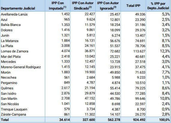 Durante el año 2022 se iniciaron 946.510 investigaciones penales preparatorias (IPP) en la provincia de Buenos Aires de las cuales 924.492 IPP corresponden al Fuero Criminal y Correccional y 22.018 IPP al Fuero de Responsabilidad Penal Juvenil (FRPJ).