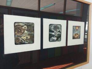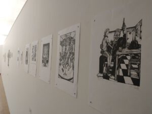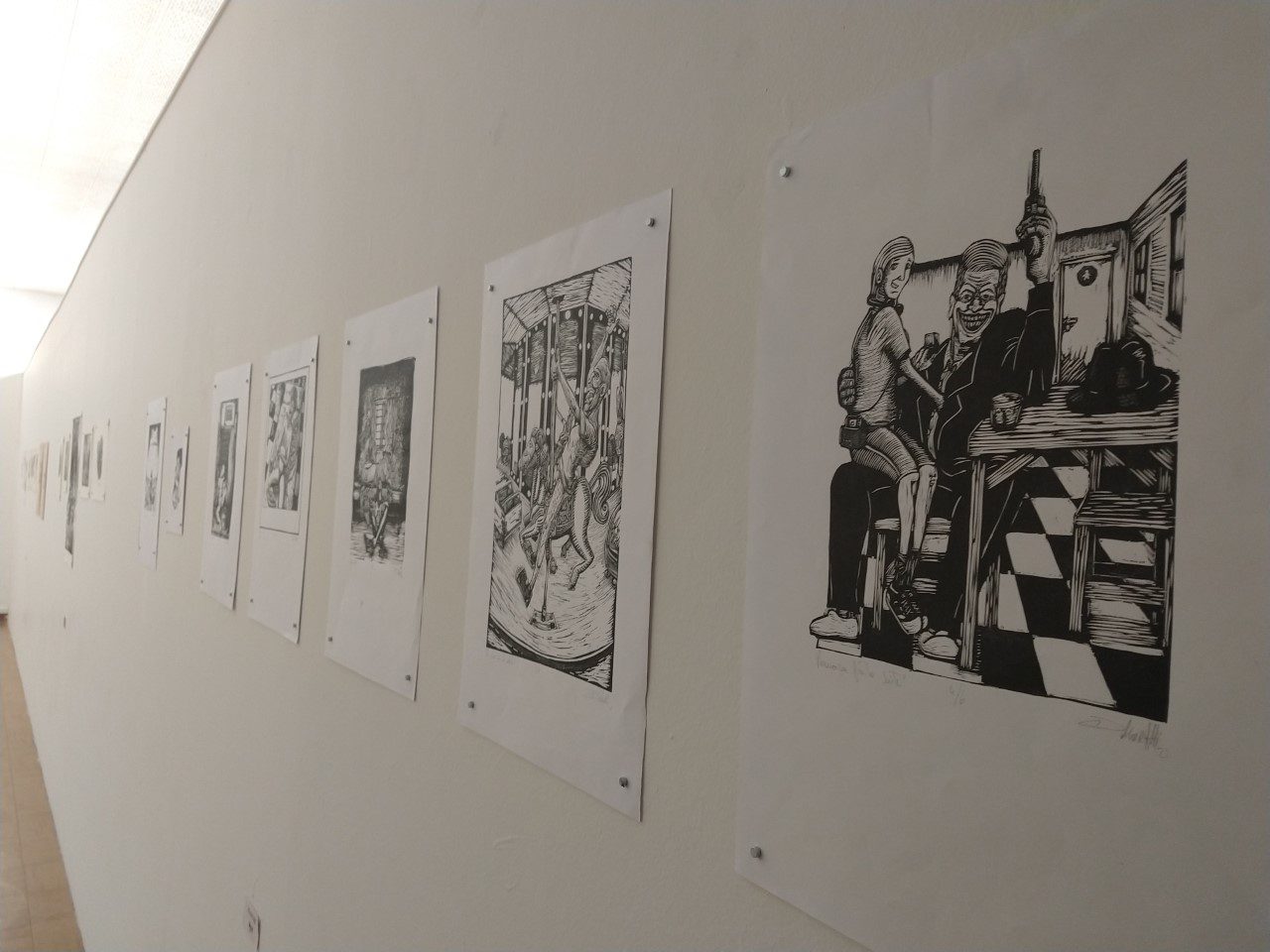– En “Hall de Exposiciones” ubicado al ingreso del edificio. “Soledades Humanas” –Grabados-. Muestra de Julieta Warman. A diferencia del dibujo y la pintura, en el grabado la imagen aparece mediante la presión extrema: una prensa comprime la matriz contra el papel. La madera (y otras veces el plástico) fue, entonces, el primer soporte. Contra ella ha pugnado la mano de la artista. Ahí donde los colores no llegan, el blanco ilumina.