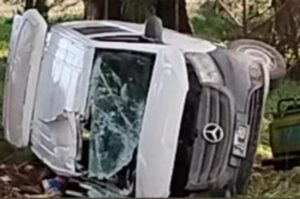 El vehículo siniestrado es una combi de transporte de pasajeros de marca Mercedes Benz que había partido poco antes de la localidad de Claromecó y tenía como destino final Mar del Plata.