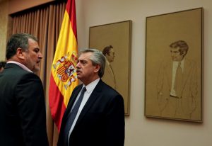 El postulante del kirchnerismo fue recibido en la Sala Constitucional del Parlamento español entre gritos de “¡Alberto presidente!” y “¡Vamos a volver!”.