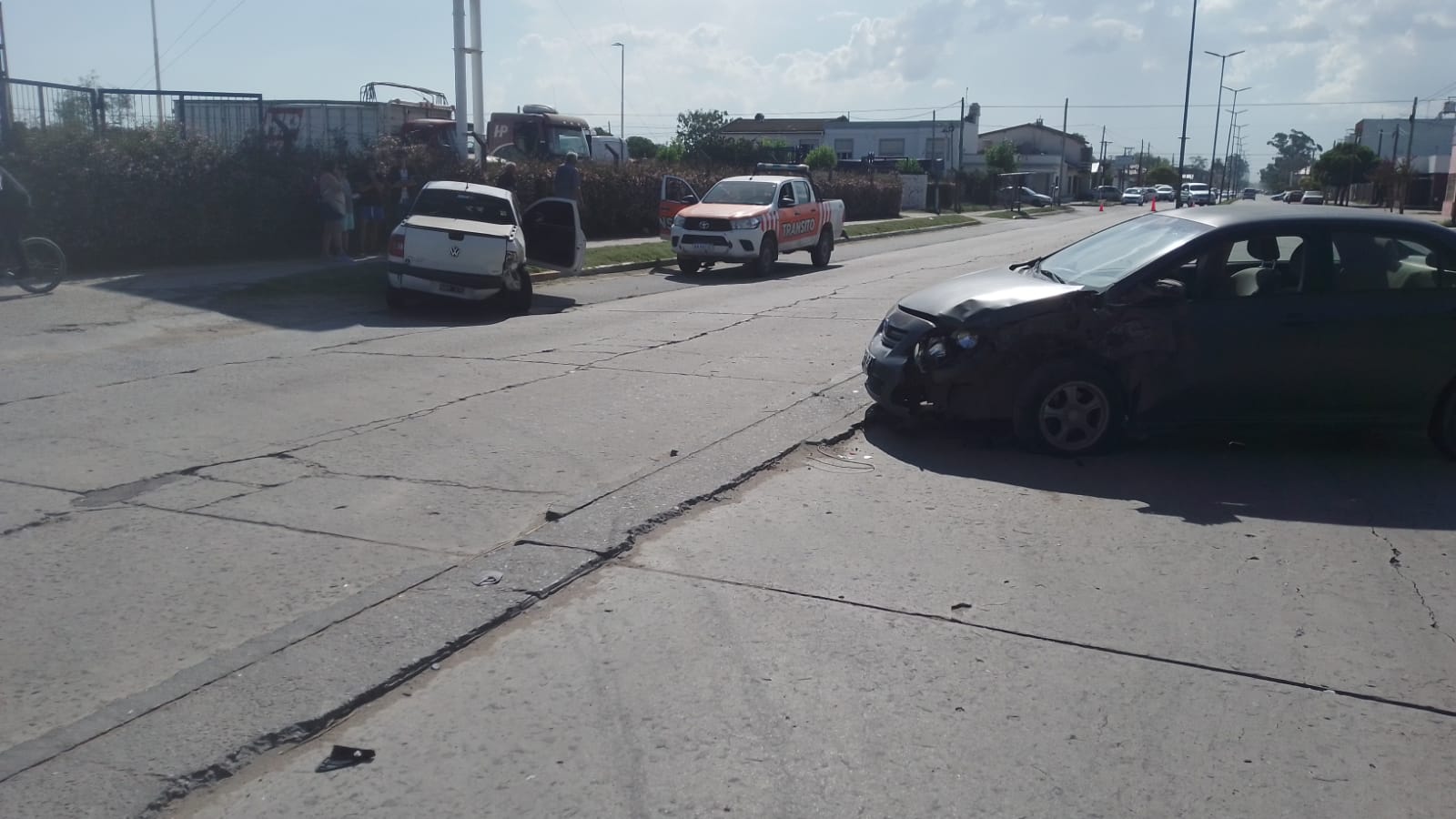 Esto dejó como resultado no sólo a ambos autos con la parte delantera destruida sino que la camioneta impactó contra uno de los postes de los servicios.