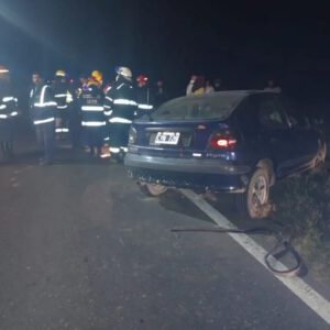 En el lugar se trabajó con Bomberos Quequén y personal del SAME para poder rescatar a una de las personas que se encontraba atrapada en dicho vehículo.
