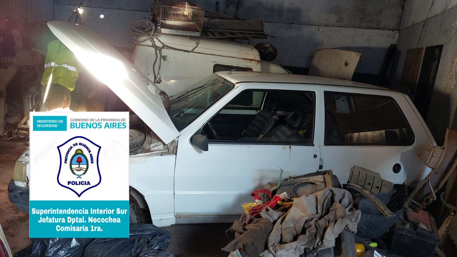 En un rápido accionar se desarrolló un fuerte operativo de la Policía Bonaerense con la colaboración del Servicio de Monitoreo para allanar un galpón donde se desguazaban autos.