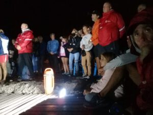 El momento más importante de la noche llegó cuando se produjo el descenso a la arena donde se dio inicio a una marcha de antorchas que escoltó las ofrendas florales que fueron depositadas en el mar. En ese entonces afloraron los sentimientos de emoción y respeto en todos los presentes, al observar como más de cincuenta guardavidas haciendo sonar sus silbatos y con las mencionadas antorchas ingresaban al mar para cumplir con el objetivo.