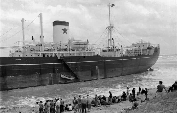 A fines de 1959, el buque que llegó a Puerto Quequén para cargar trigo y transportarlo a Holanda. Sin embargo, la mala fortuna volvió cruzarse y cuando el buque se encontraba fondeado en nuestra estación marítima, una fuerte ráfaga de viento rompió las amarras y lo dejó al garete.