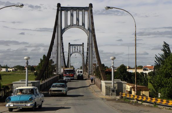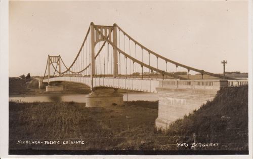 Tras otros actos y visitas, se procedió, a las 15.30 de ese 21 de julio, a la inauguración del Puente Colgante. Cuentan que el primer vehículo que cruzó el gigante de acero fue un desvencijado camioncito con 25 bolsas en su caja. Esto no ocurrió el día de la inauguración sino unos meses antes, cuando el puente fue habilitado para el tránsito.