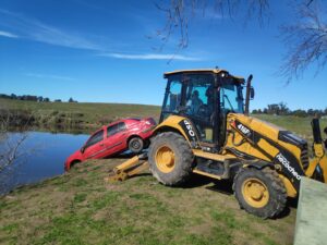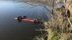Apareció en el río Quequén un auto que había sido denunciado como robado. El vehículo, un Renault Clio, patente EYW 837, fue divisado flotando en las aguas, con las cuatro ruedas para arriba, en el camino hacia las cascadas, a la altura de una de las estaciones del Vía Crucis.