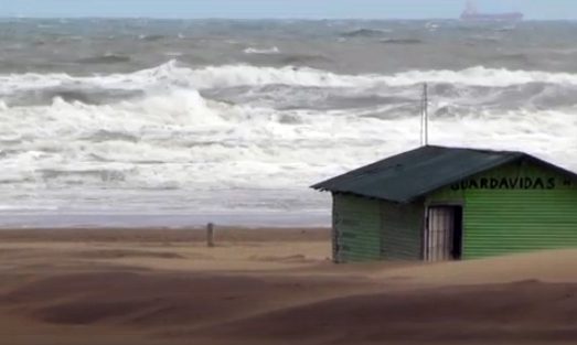 En las imágenes vemos el mar durante la tarde hoy, embravecido y con la arena golpeando fuertemente sobre la costa.