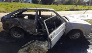 Ayer, aproximadamente a la 1,45, se incendió completamente un Volkswagen Gol que estaba estacionado en la vereda de la calle Sanz 376 de Lobería.