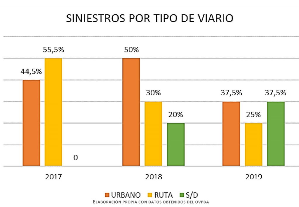 Dada las características de la ciudad, se ha optado por una primera clasificación de los siniestros: ocurridos en ruta, ocurridos en la zona urbana.