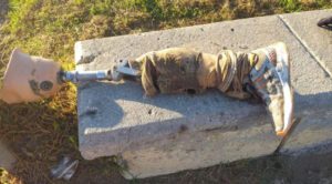 La prótesis, con parte de un pantalón y una zapatilla, fue encontrada esta mañana por un transeúnte que pasaba por el lugar.