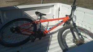 Se trata de un rodado Mountain Bike marca Bronx de color Naranja, que dos delincuentes cargaban en una moto 110CC sin cachas.