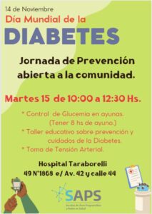 Hoy, en el marco del Día mundial de la Diabetes, en el Hospital Taraborelli se llevarán adelante diferentes actividades de prevención de la Diabetes.