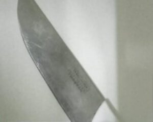 El sitio fue en calle 84 N°3400, luego de realizar una minuciosa búsqueda acorde la reglamentación legal vigente procedieron al legal secuestro de un cuchillo tipo carnicero con cabo de plástico de color blanco con hoja de 20 cm de un solo filo (indicado en la denuncia).