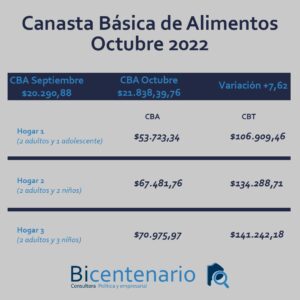 Durante el mes de octubre la Canasta Básica de Alimentos (CBA) de Necochea mostró una suba de precios del 7,62 % con respecto a septiembre, según informa el índice realizado por la Consultora Bicentenario.