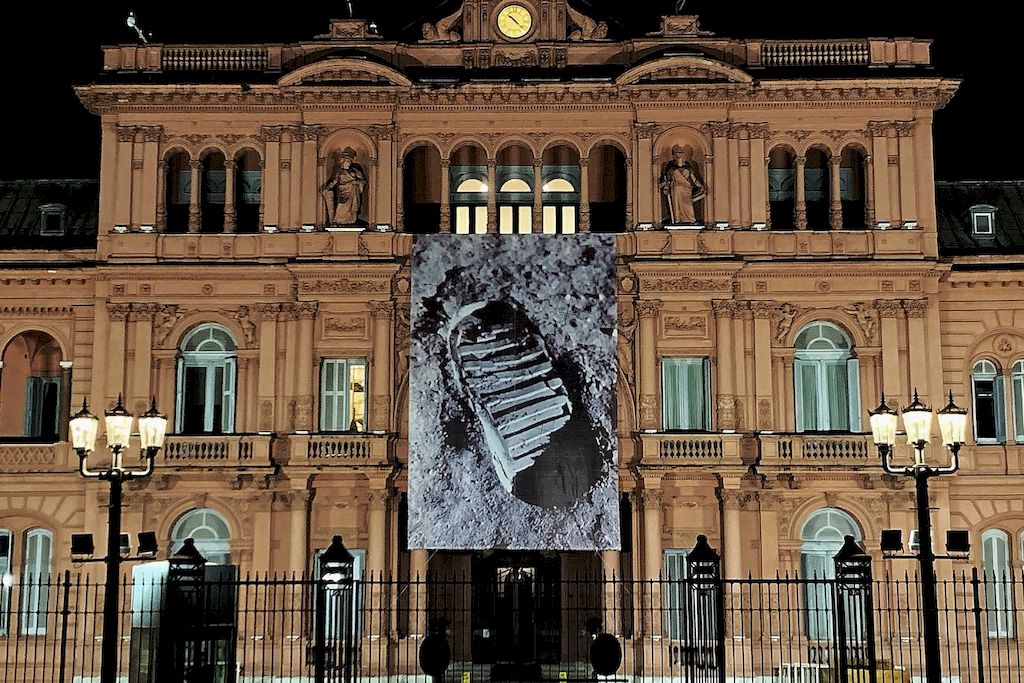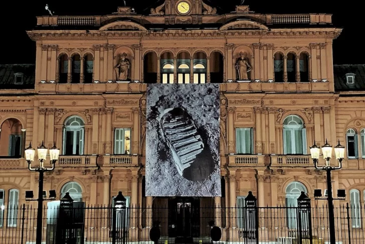 La Casa Rosada amaneció este viernes con una gigantografia de la famosa pisada humana en la luna, en recuerdo de la hazaña conseguida hace 50 años por el hombre, cuando el 20 de julio de 1969 el astronauta Neil Armstrong, tripulante de la misión espacial Apolo XI, dejó la primera huella humana en la superficie lunar.