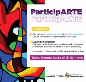 La Municipalidad de Necochea lanzó el novedoso programa “Participarte”, una propuesta que tiene como finalidad primera brindar a las personas en edad de adultez mayor y/o con alguna discapacidad la posibilidad de realizar sus propias expresiones artísticas y exhibirlas en un encuentro final de arte y cultura abierto a toda la comunidad.