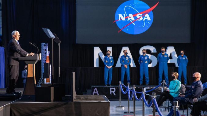 “Les presento a los héroes del futuro que nos van a llevar de regreso a la Luna y más allá”, dijo Pence, en una evidente referencia final a los planes para, luego de la misión lunar, algún día llegar a Marte.