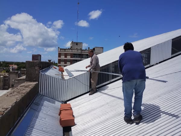 En este momento están colocando las babetas en el techo. Son más de 150 metros de babetas y copertinas” explicó Galván a Tsn Necochea, aclarando que son trabajos que desde el exterior no sen ve porque se realiza arriba del techo.