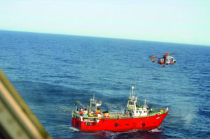 La Prefectura Naval Argentina, a través de su Dirección de Tráfico Marítimo, Fluvial y Lacustre, realiza el monitoreo permanente de los espacios marítimos argentinos mediante tecnología propia aplicada y de patrullajes aéreos y por agua.