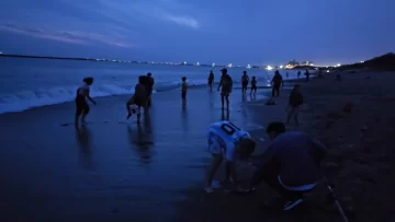 En los videos compartidos en redes sociales, puede observarse como parte del cardumen queda coleteando en la arena con la llegada de cada ola.