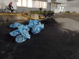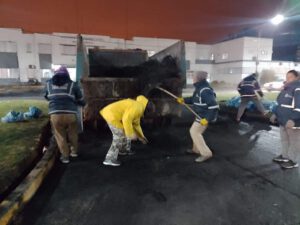 Personal de Obras Públicas se abocó ayer a la limpieza del ingreso del hospital Ferreya luego de las manifestaciones con quema de neumáticos que realizaron el fin de semana familiares y amigos que un paciente que exigían su traslado.