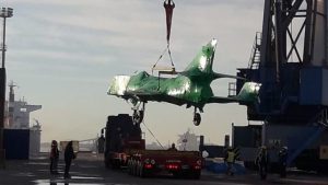 La nave –que en sus bodegas trajo a las cinco aeronaves militares- tenía ya reservado un sitio en el muelle “Ingeniero Andoni Irazusta” de la terminal Patagonia Norte, correspondiente al complejo portuario de la localidad de “Ingeniero White”.
