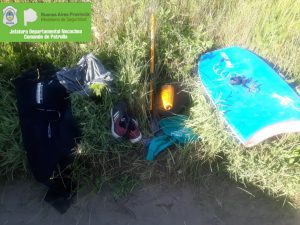 En el terreno la policía encontró además un body o tabla para deportes náuticos con su funda, prendas de vestir y una maquina bordeadora.
